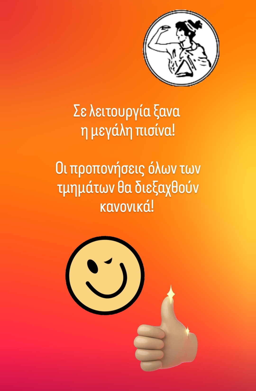 Οι προπονήσεις της μικρής πισίνας θα διεξαχθουν κανονικά στο χώρο της μεγάλης κολυμβητικής δεξαμένης...