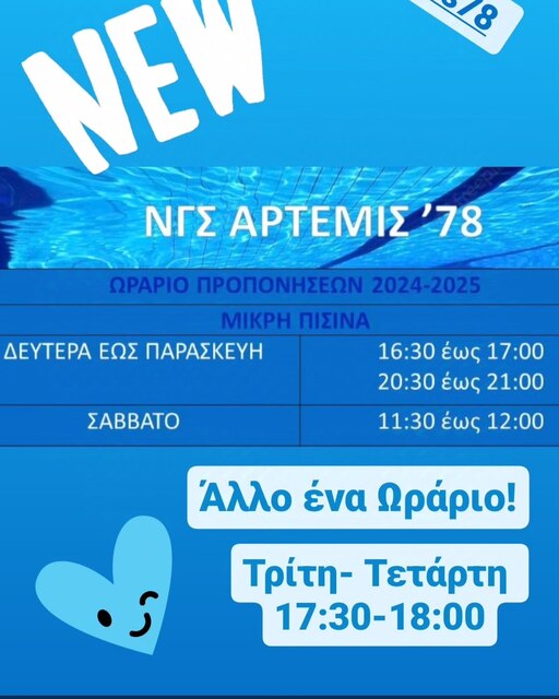 Άλλο ένα ωράριο εξασφάλισε η ομάδα μας για τα παιδιά που δεν γνωρίζουν κολύμπι.