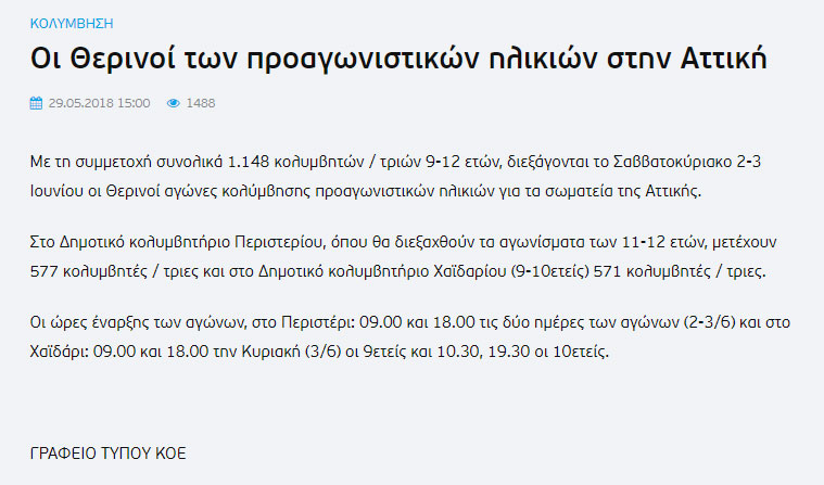 Και αυτό το Σαββατοκύριακο, 2-3/6/18 ο ΝΓΣ Άρτεμις '78 θα δώσει το δυναμικό παρόν στους Θερινούς Αγώνες Προαγωνιστικών κατηγοριών Αττικής!