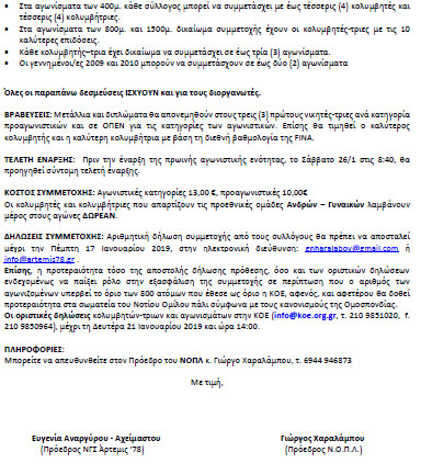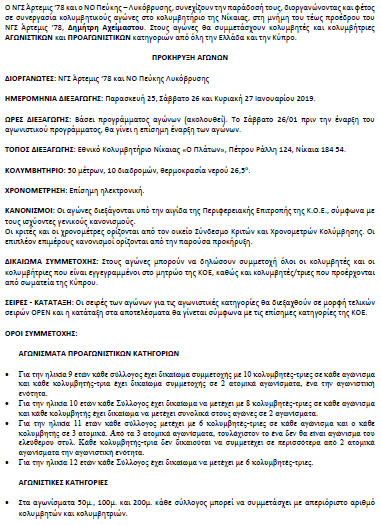 Κολυμβητικοί αγώνες Αγωνιστικών και Προαγωνιστικών κατηγοριών